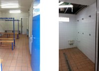 L’objecte del projecte és adequar l’interior dels vestidors, serveis generals i el vestíbul públic, millorant les condicions de salubritat i els acabats interiors existents. La primera fase preveu renovar els acabats interiors dels vestidors i els distribuïdors, substituir els aparells sanitaris, enllumenat, radiadors i mobiliari. Canviar la distribució interior del nucli dels banys existents per permetre incorporar banys adaptats en dos dels vestidors i adequar els distribuïdors d’accés als vestidors i a la pista. El nou vestidor dels àrbitres se situarà en el lloc on, actualment, s’utilitza com a magatzem dels espais administratius. En la segona fase es renovaran els acabats interiors de la zona de serveis generals i el vestíbul del pavelló. Es preveu incorporar proteccions solars per a les obertures del distribuïdor d’accés als vestidors per l’exterior.