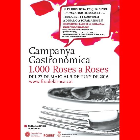 Sou a: Inici Esdeveniments 1.000 Roses a Roses 1.000 Roses a Roses Del 27 de maig al 5 de juny de 2016 https://www.roses.cat/agenda/1-000-roses-a-roses-1 https://www.roses.cat/@@site-logo/escut.png 1.000 Roses a Roses Del 27 de maig al 5 de juny de 2016 Més informació sobre aquest esdeveniment a: http://www.firadelarosa.cat/1000-roses/ Dia i hora: 27/05/2016 a 00:05 fins a 05/06/2016 23:55 Què: Fires i mercats al carrer Oci Lloc: A diferents establiments de la vila Compartir: Accions del document Imprimeix-ho Envia Cursos de català per a adults Biblioteca Municipal de Roses Arxiu Municipal de Roses Oferta pública d'ocupació Servei d'atenció i informació a les dones Imatge corporativa Club de la feina Recull de premsa Roses Serveis Piscina Municipal de Roses Port esportiu Fons Next Generation 2022-24 Rosespèdia Pla de Mesures Antifrau Ajuntament de Roses Perfil del contractant Guia de creuers de Roses Activitats esportives Centre d'Innovació Turística i Social