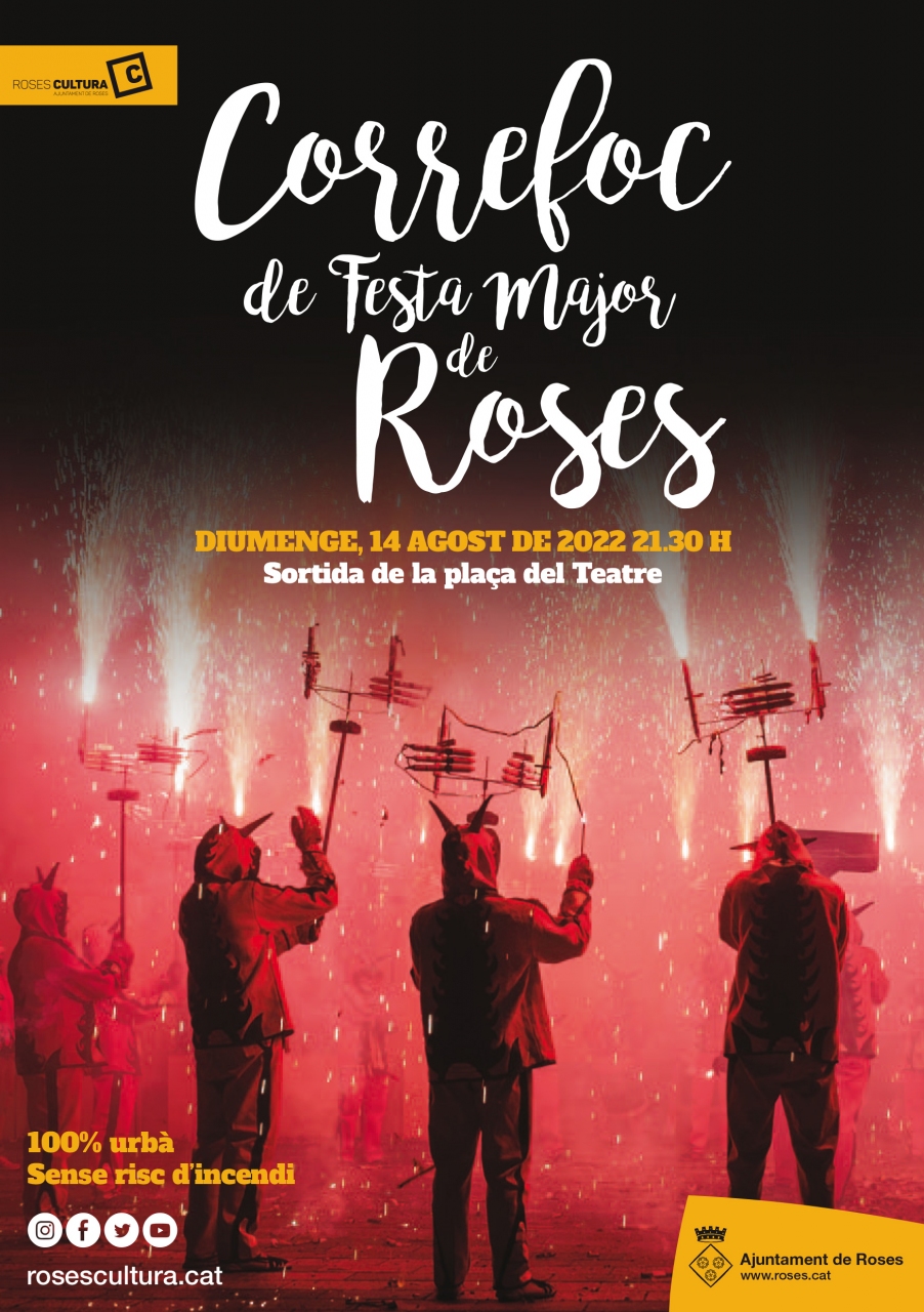 Sou a: Inici Esdeveniments Agenda d'activitats Correfoc Correfoc Des de la plaça del Teatre fins a la Ciutadella https://www.roses.cat/agenda/activitats/3186 https://www.roses.cat/@@site-logo/escut.png Correfoc Des de la plaça del Teatre fins a la Ciutadella 14-08-2022 / 21:30 Lloc: Teatre Municipal Preu: Gratuït Dia i hora: 14/08/2022 21:30 fins a 21:30 Què: Festa major Compartir: Accions del document Canal RSS Imprimeix-ho Envia Cursos de català per a adults Biblioteca Municipal de Roses Arxiu Municipal de Roses Oferta pública d'ocupació Servei d'atenció i informació a les dones Imatge corporativa Club de la feina Recull de premsa Roses Serveis Piscina Municipal de Roses Port esportiu Fons Next Generation 2022-24 Rosespèdia Pla de Mesures Antifrau Ajuntament de Roses Perfil del contractant Guia de creuers de Roses Activitats esportives Centre d'Innovació Turística i Social
