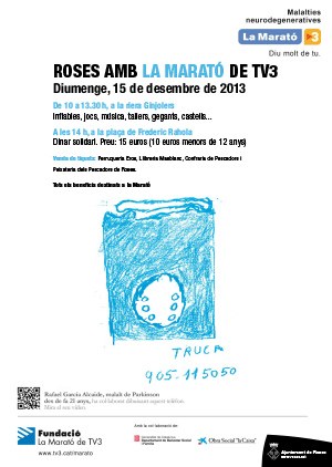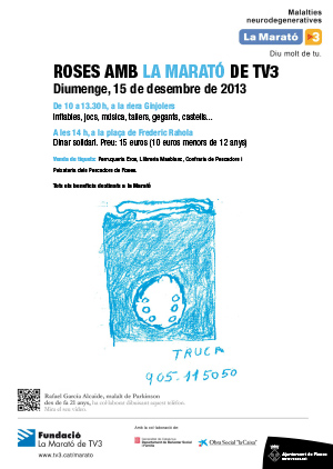 Roses amb la Marató de TV3. A les 10 h, a la riera Ginjolers https://www.roses.cat/agenda/roses-amb-la-marato-de-tv3 https://www.roses.cat/@@site-logo/escut.png Roses amb la Marató de TV3. A les 10 h, a la riera Ginjolers Dia i hora: 15/12/2013 10:00 fins a 20:00 Què: Fires i mercats al carrer Lloc: Riera Ginjolers Compartir: Accions del document Imprimeix-ho Envia
