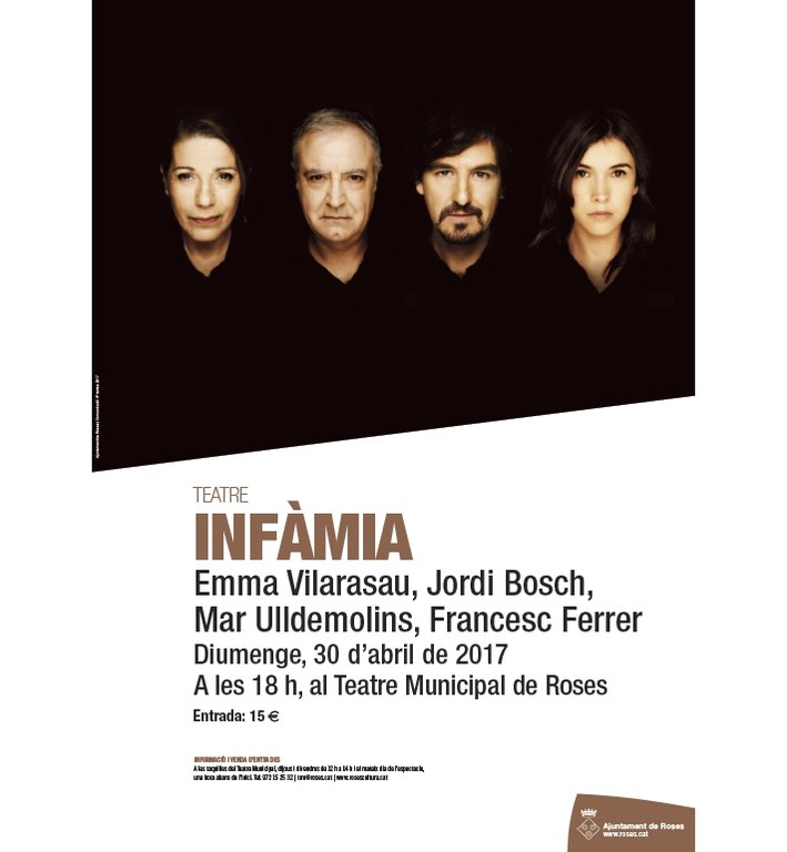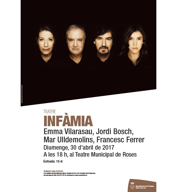 Teatre: InfàmiaDiumenge 30 d’abril, a les 18 h, al Teatre Municipalhttps://www.roses.cat/agenda/teatre-infamiahttps://www.roses.cat/@@site-logo/escut.png