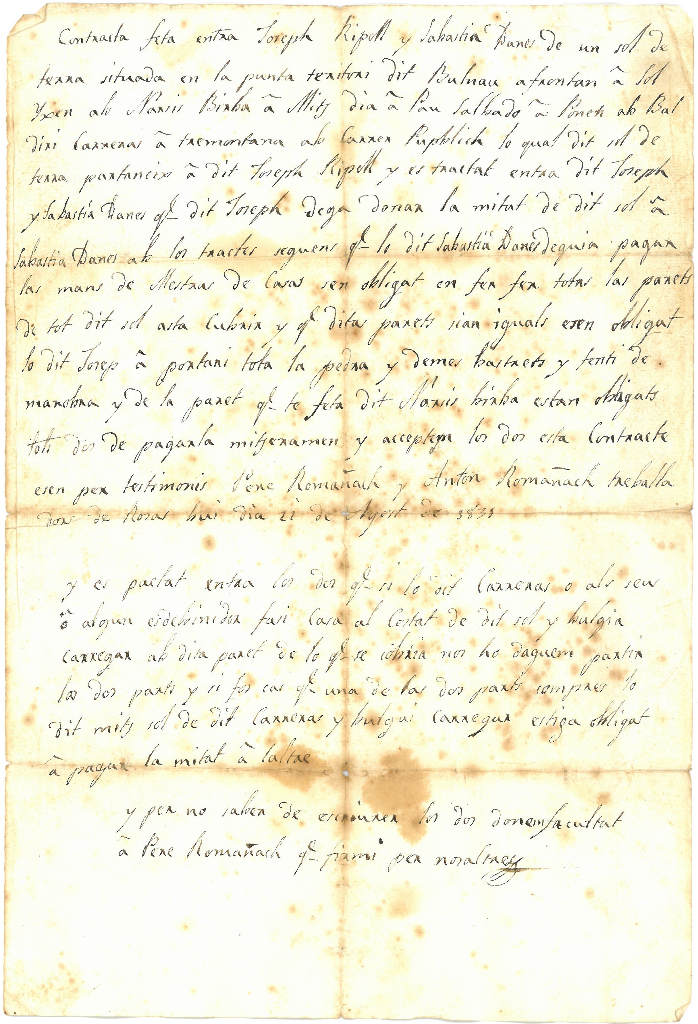 Contracte de compra d'un terreny al Volnau o la Punta