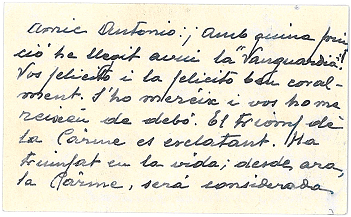 Felicitació al pare de la Carme Vilà