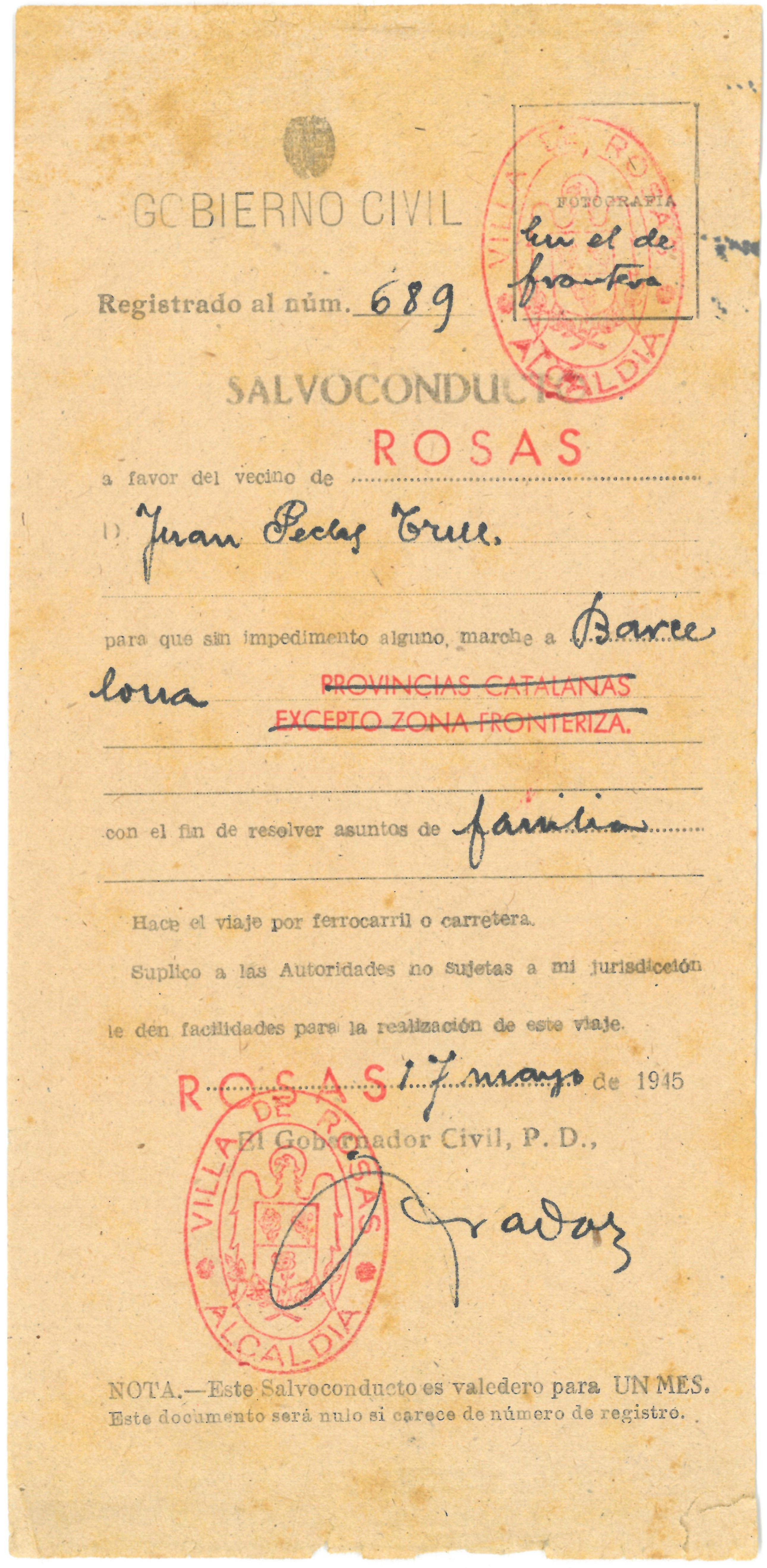 Salconduit de frontera del Govern Civil