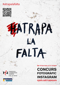 “Atrapa la falta” és un concurs de fotografia a la xarxa social d’Instagram, adreçat especialment als joves, però obert a tothom, que pretén conscienciar els joves sobre la importància que té la llengua a l’hora d’oferir una determinada imatge de qualitat i sobre els efectes negatius que poden tenir per a una marca, un producte, etc. les incorreccions lingüístiques.
