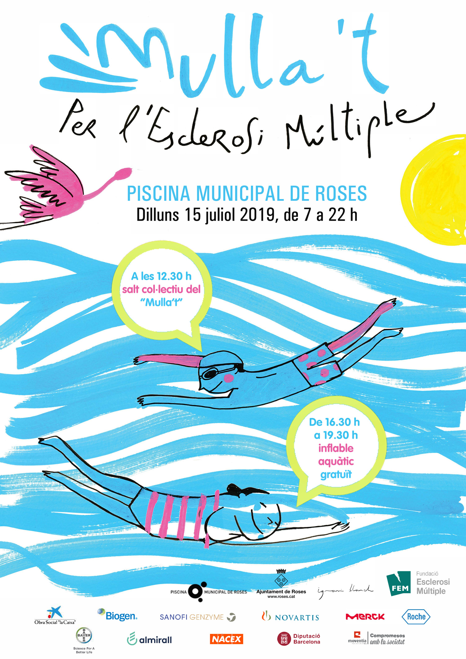 Són més de 600 piscines les que s’adhereixen a la campanya i que col·laboren per la causa, la majoria de les quals duen a terme l’esdeveniment el diumenge 14 de juliol. A Roses, però, ho farem just l’endemà, el dilluns dia 15. T’ho anotes a l’agenda?