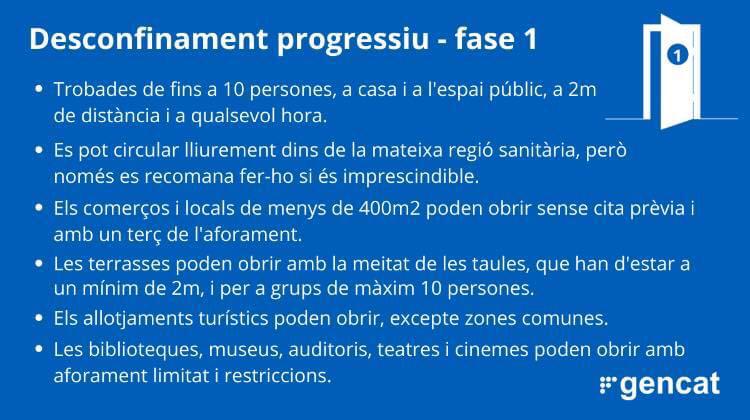 Activació de la Fase 1 de desescalada, a partir de dilluns 18 de maig