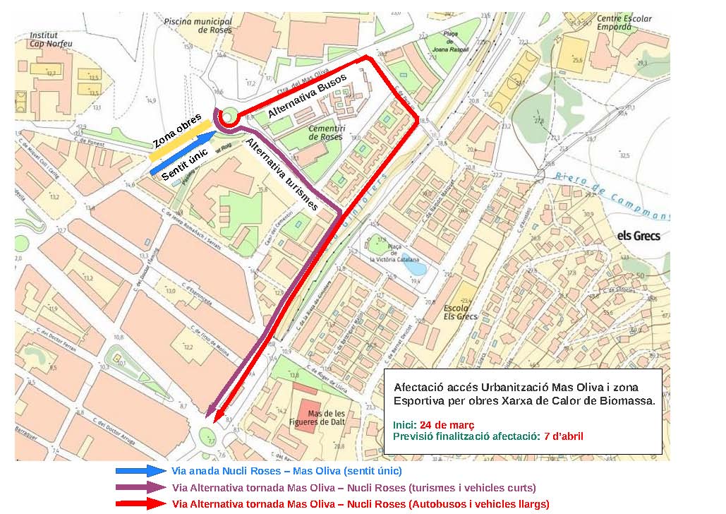- El carril en sentit pujada, des del nucli de Roses cap a la urbanització del Mas Oliva, no tindrà cap afectació.