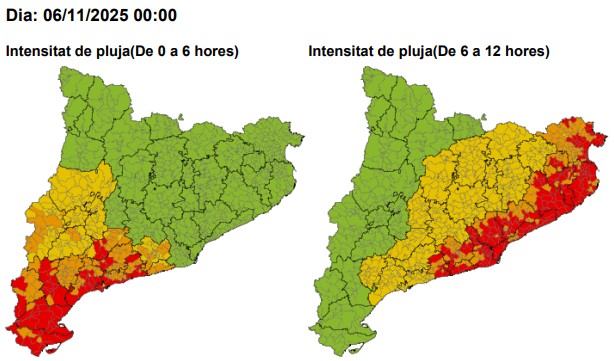 Alerta del Pla INUNCAT per la previsió de fortes pluges a partir de la matinada de dijous a tot el litoral