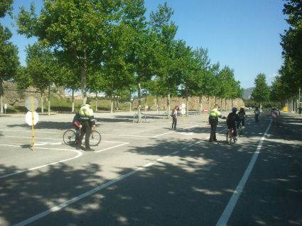 Per portar a terme les pràctiques, els agents van recollir als respectius centres als alumnes que, en bicicleta i protegits amb casc, es van dirigir fins a l’espai habilitat a on van seguir un circuit complint amb les pautes de trànsit i amb les indicacions que els feien els organitzadors.