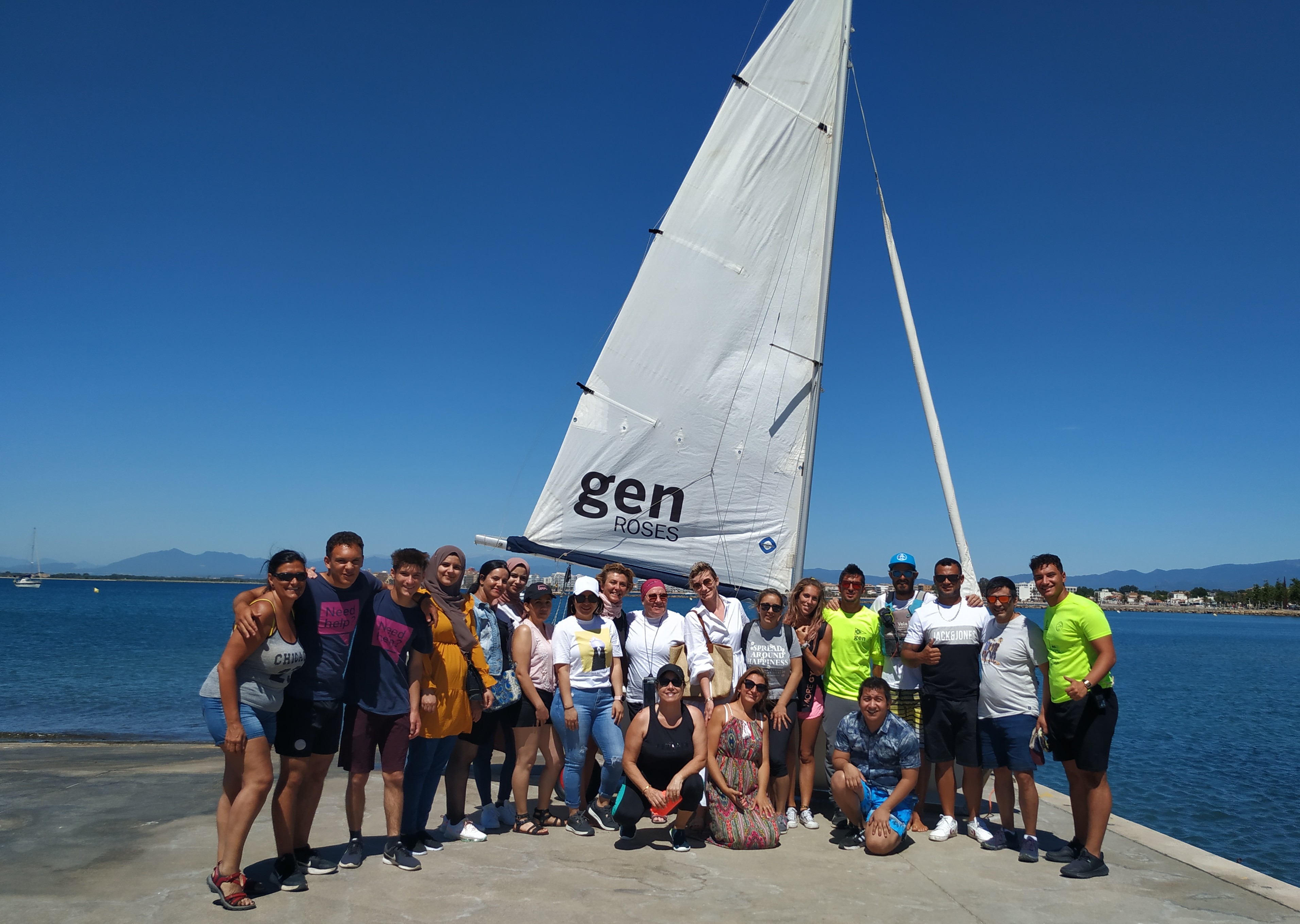 Alumnes i parelles lingüístiques de l’Oficina de Català de Roses participen en un taller nàutic al GEN Roses