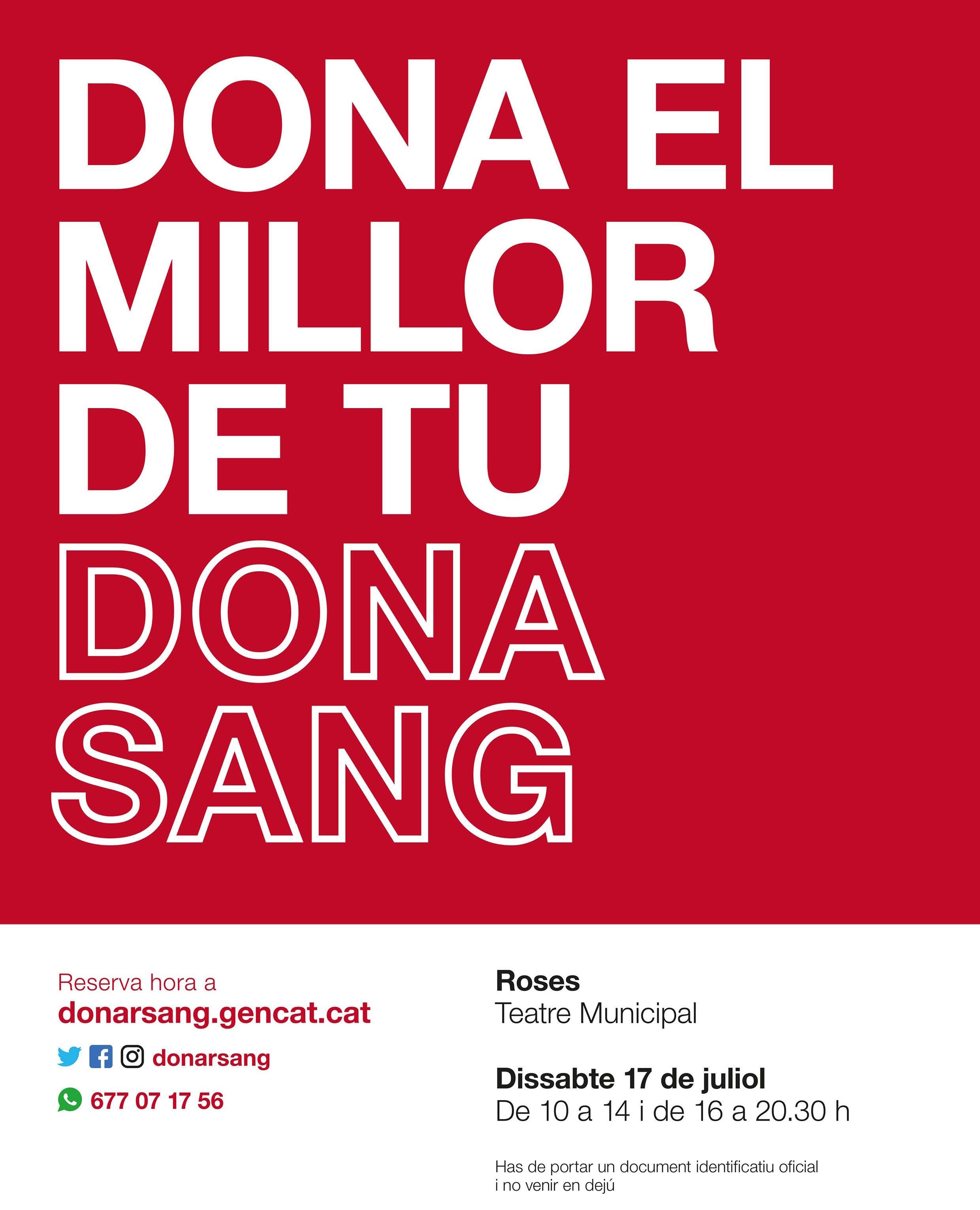 Aquest dissabte, 17 de juliol, donació de sang a Roses