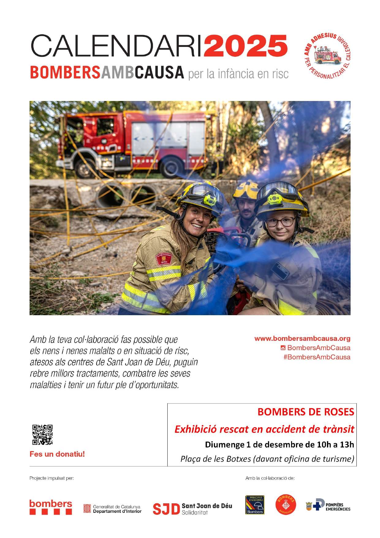 Aquest diumenge, 1 de desembre, tindrà lloc a la plaça de les Botxes de Roses, entre les 10 i les 13 hores, una exhibició de vehicles de rescat i un simulacre de rescat en accident de trànsit per per part dels Bombers de Roses. L’activitat s’emmarca dins la campanya solidària ‘Bombers amb causa’, que recapta fons per als infants de l’Hospital Sant Joan de Déu.