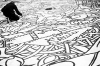 El fil conductor dels diferents artistes de la mostra és el grafisme, la seva relació amb el disseny i els materials que utilitzen a l’hora de crear: collage, materials reciclats, tisores, retoladors, superfícies no pictòriques, com taules de patí... Es tracta d’art fet amb materials de consum, elements amb data de caducitat, imatges reutilitzades, pictografies ocultes per la saturació de missatges.