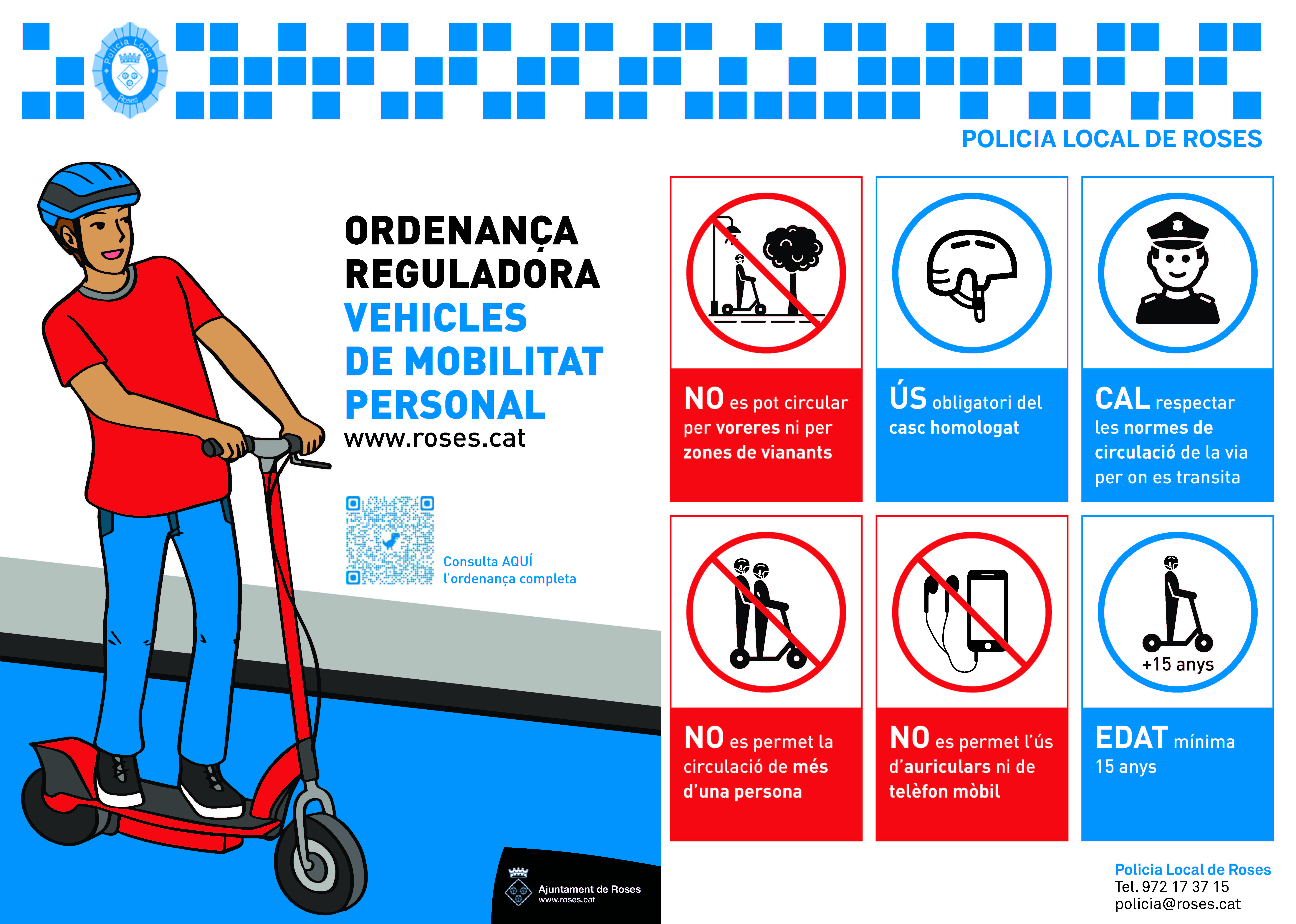 Amb l’arribada del bon temps, amb el qual l’ús d’aquesta tipologia de vehicles s’incrementa, i pensant en la propera temporada d’estiu, l’Àrea de Seguretat Ciutadana de Roses engega una campanya informativa consistent en el repartiment de fulls informatius per part de les patrulles als usuaris de patinets, segways i similars. A més, s’ha contactat amb les empreses de lloguer d'aquests tipus de vehicles, per comptar amb la seva col·laboració a l’hora de traslladar aquesta informació entre els seus clients.