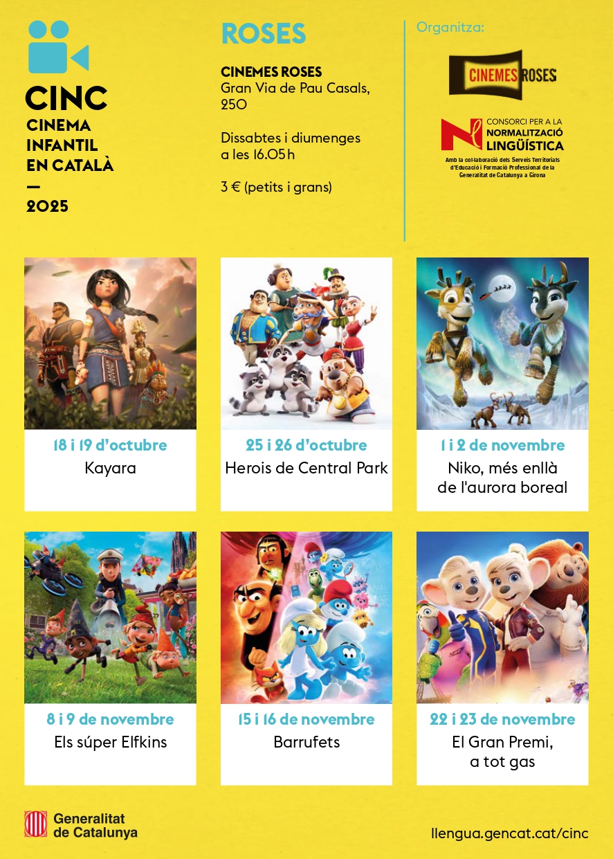 El CINC, impulsat pel Departament de Política Lingüística, té la col·laboració del Consorci per a la Normalització Lingüística, a través de l’Oficina de Català de Roses, i dels Cinemes Roses.