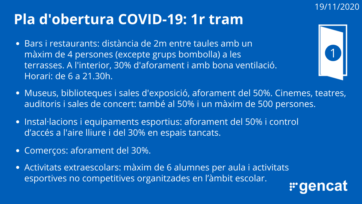 Comença l’obertura progressiva d’activitats el 23 de novembre