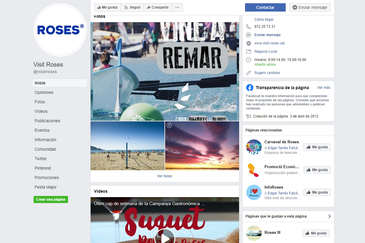 Pel que fa a les xarxes socials, aquestes han experimentat també un important increment en el nombre de seguidors i visites. El perfil de visitroses a Facebook compta amb 10.783 seguidors (17,4% més que a 2018), amb 11.207 a Instagram (34,9 d’increment) i amb 2.675 a Twitter (9,6% superior). El seguiment i interès pels continguts publicats queda palès en l’augment de redireccionaments a la web obtingudes a través dels enllaços de publicacions a les xarxes socials, que han augmentat un 43% respecte a 2018 i un 112% respecte a 2017.