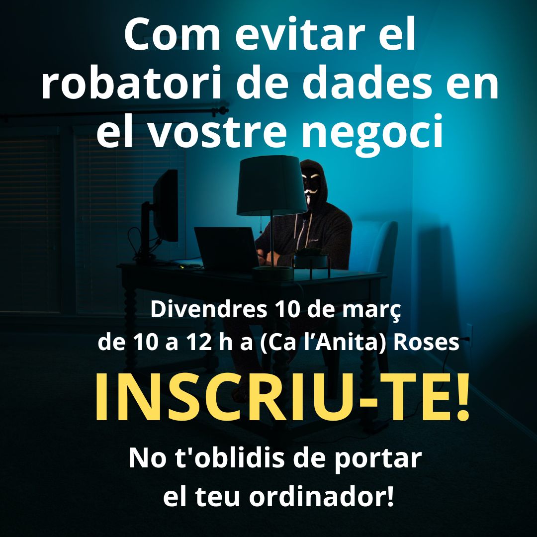 La sessió començarà a les 10 del matí, tindrà dues hores de durada, i estarà impartida per Ayub Nakmoussi Harrak, consultor sènior i gestor de projectes de TI. S’iniciarà amb una ponència per part de l’expert on explicarà aspectes com què és la ciberseguretat, quins impactes tenen els ciberatacs, com entren les amenaces en els sistemes informàtics i quins consells cal seguir per mantenir ciberprotegit un negoci, per donar pas a continuació a les preguntes i dubtes dels assistents. Es recomana dur ordinador portàtil per aplicar les nocions exposades en el seminari. Les inscripcions ja es poden fer a través d’aquest enllaç: Com evitar el robatori de dades en el vostre negoci – AcceleraPime (ddgi.cat).