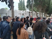 A partir de les explicacions d'aquest espai, els alumnes van omplir un qüestionari relacionat amb tot allò que havien escoltat, d’acord amb el seu nivell de llengua. Aquest qüestionari es revisarà i comentarà posteriorment a l'aula. Aquesta sortida ha guiat els aprenents per la història del cementiri i per l’art funerari existent, i els ha ajudat a entendre una mica més la vila d’acollida.