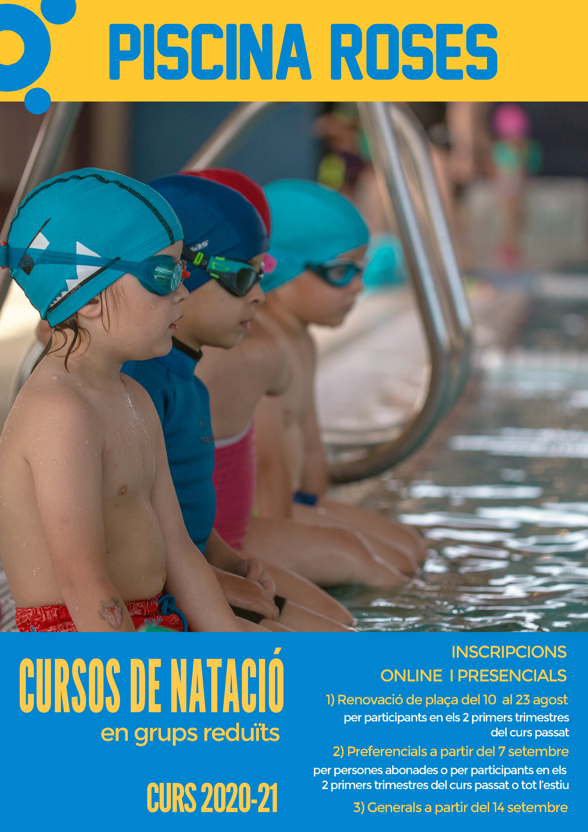 Les inscripcions als cursos es podran fer en línia a través de www.piscinaroses.cat i també de forma presencial a partir de la data i l’horari de cada període. Es recomana fer-les en línia a través de la web per agilitat, rapidesa i seguretat. Abans de l’inici de l’activitat caldrà signar la declaració responsable per la COVID-19.