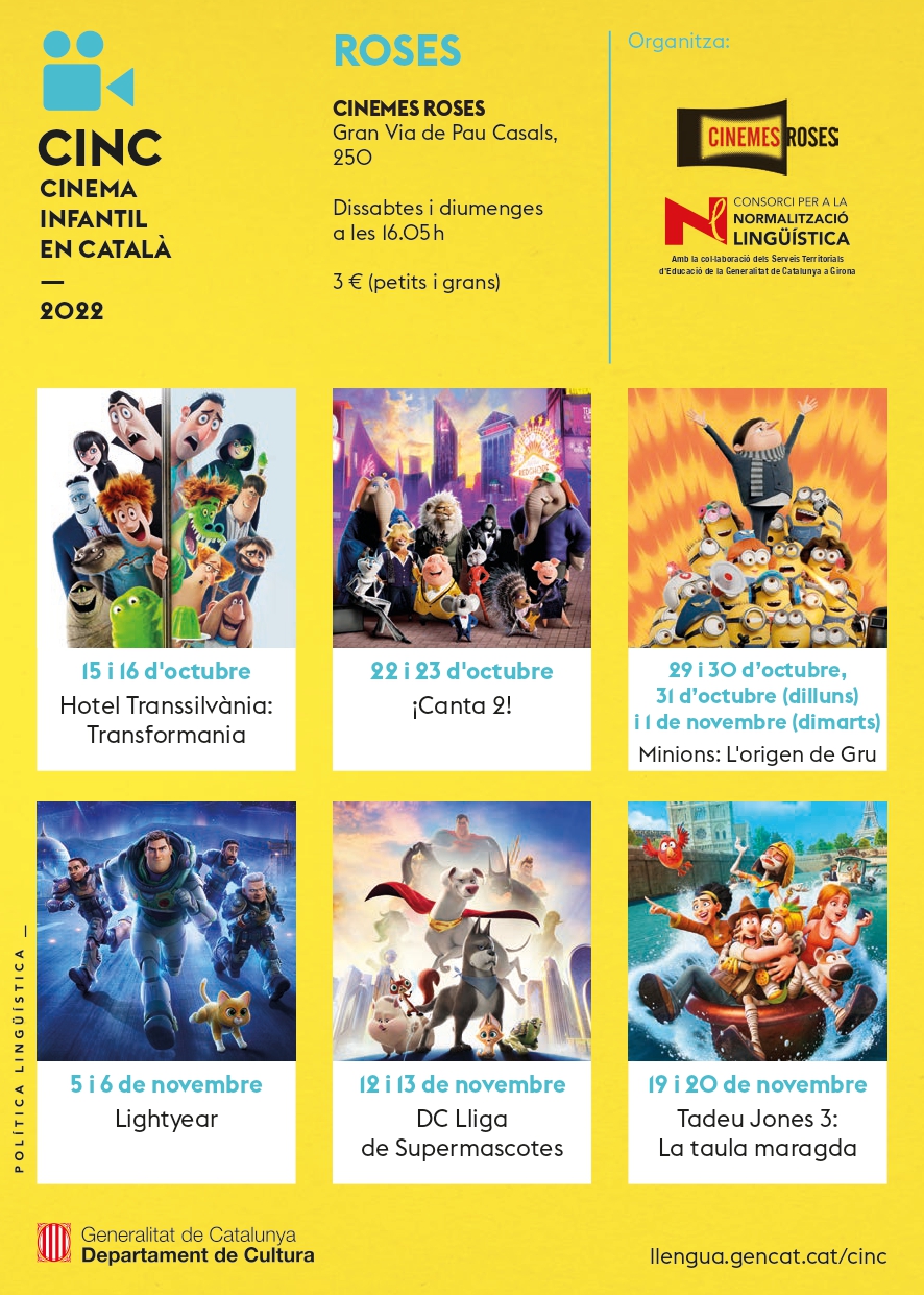 El CINC, impulsat per la Secretaria de Política Lingüística, té la col·laboració del Consorci per a la Normalització Lingüística, a través de l’Oficina de Català de Roses, i dels Cinemes Roses.