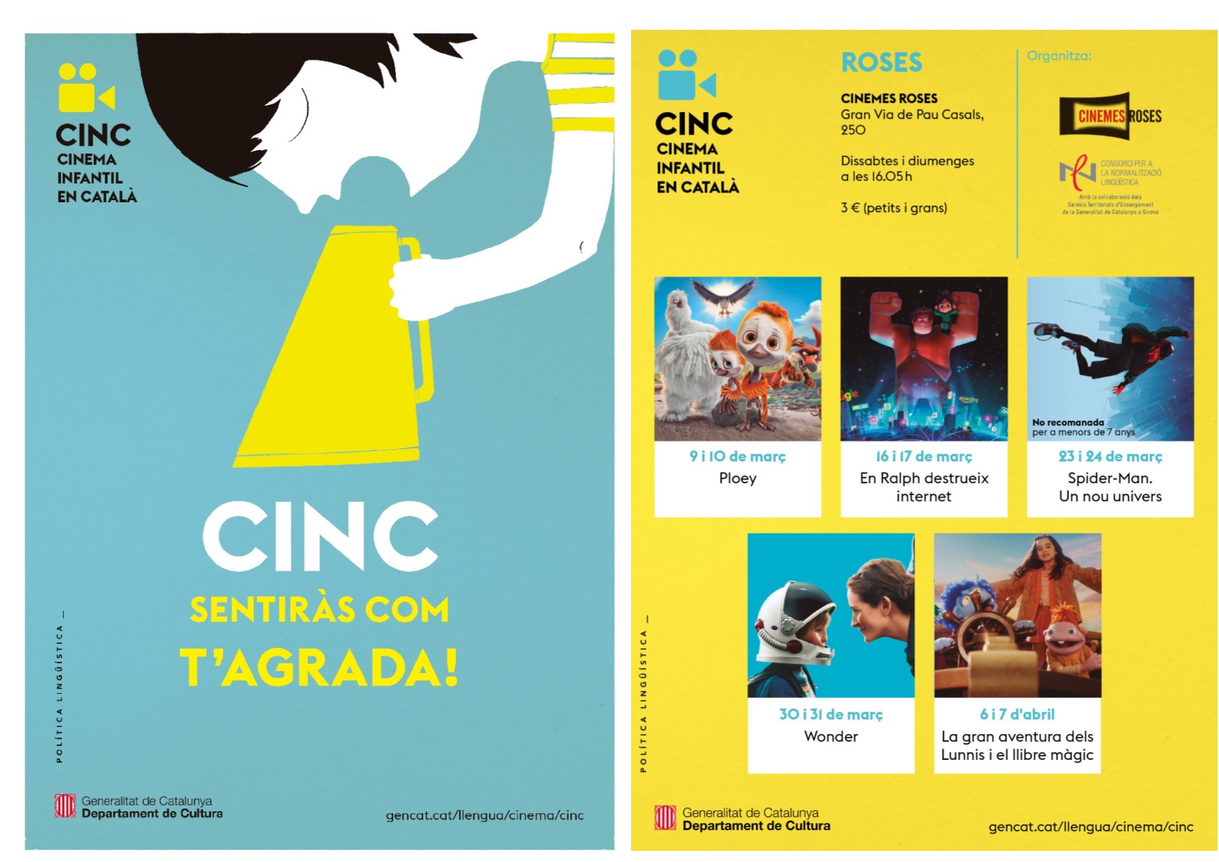 El CINC, impulsat per la Direcció General de Política Lingüística, té la col·laboració del Consorci per a la Normalització Lingüística, a través de l’Oficina de Català de Roses, i dels Cinemes Roses.