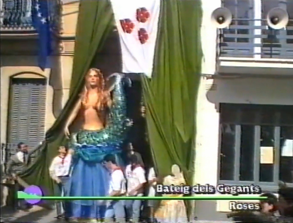 En aquesta ocasió l’Arxiu parla d’un document en format audiovisual, el vídeo corresponent al noticiari de Televisió de Roses del 24 d'abril de 1995, que va centrar la seva atenció en la Diada de Sant Jordi celebrada el dia abans, amb l’acte del bateig dels dos gegants de Roses, la sirena Demètria i el pastor Quimet.