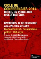 En la seva conferència del proper divendres, Casassas parlarà sobre 100 anys de Mancomunitat i catalanisme polític, cloent així el cicle 'Roses, un poble amb molta història', pel qual han passat també en aquesta edició els historiadors Xavier Hernández i Queralt Soler.