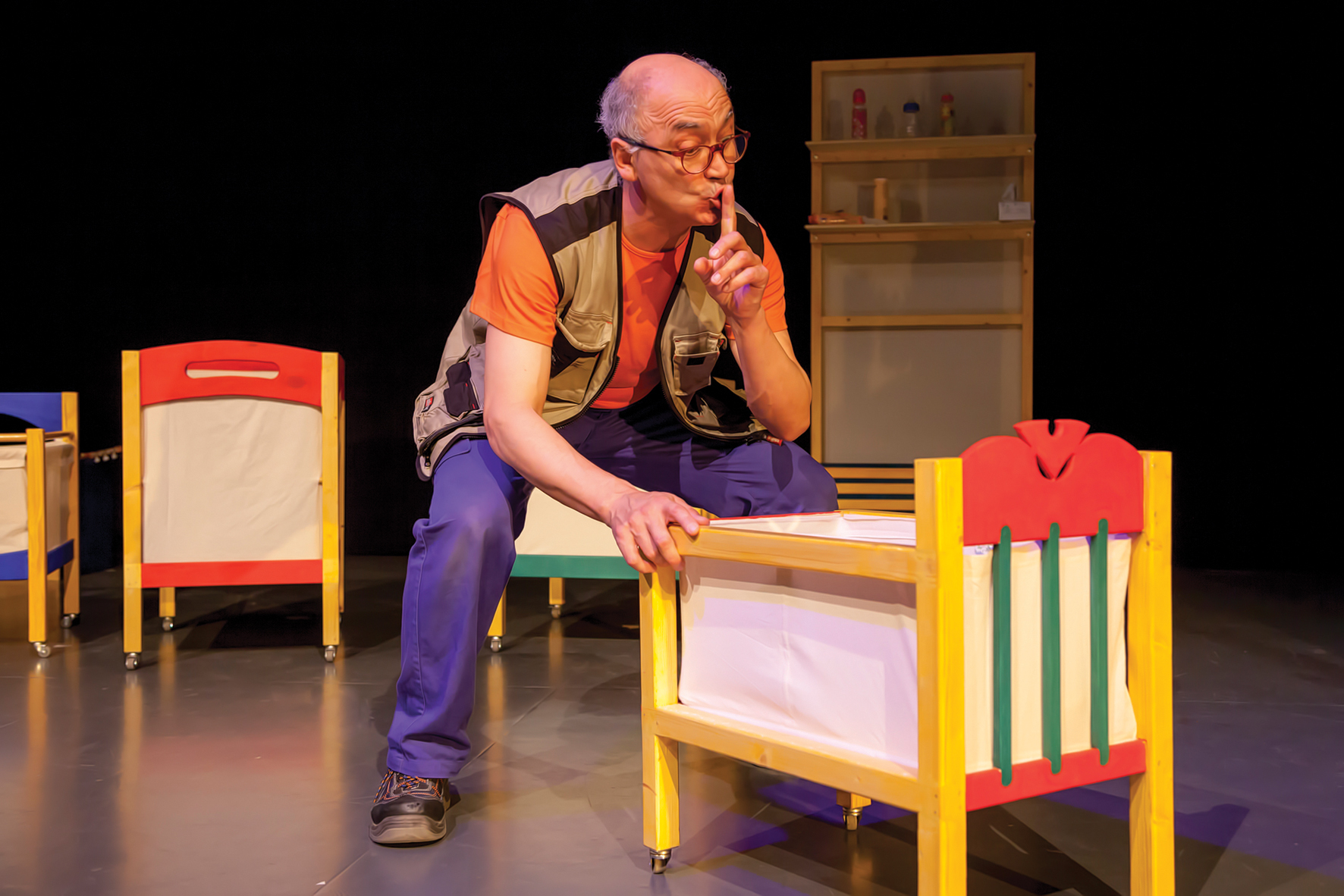 Què ha de fer? Marxar? No s'atreveix, no pot deixar-los plorant. Després d'uns moments de pànic i de total desconcert aconsegueix a poc a poc de restablir la calma. Els gronxarà, acaronarà i els tranquil·litzarà. Els plors es convertiran en riures. Començarà aquí una aventura que el portarà a retrobar el nen que porta dins i que li permetrà sentir-se proper a aquells de qui es creia tan distants.