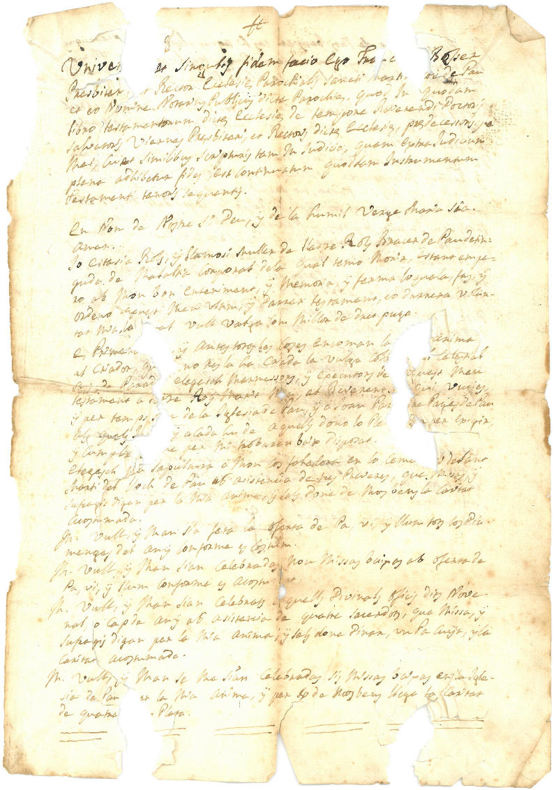 També resulta interessant parar atenció en l'estructura bàsica que es repetia en tots els testaments de l'època, que començaven amb una invocació religiosa i/o amb alguna referència a la mort. Seguidament se citaven les dades personals de l'atorgant, els marmessors, la seva elecció, la petició que li fossin pagats els deutes i la restitució de les seves injúries, si en tenia. Després escollia el lloc de la seva sepultura i disposava els llegats i les celebracions religioses que se li havien de dedicar al mort. Finalment, el mateix testador