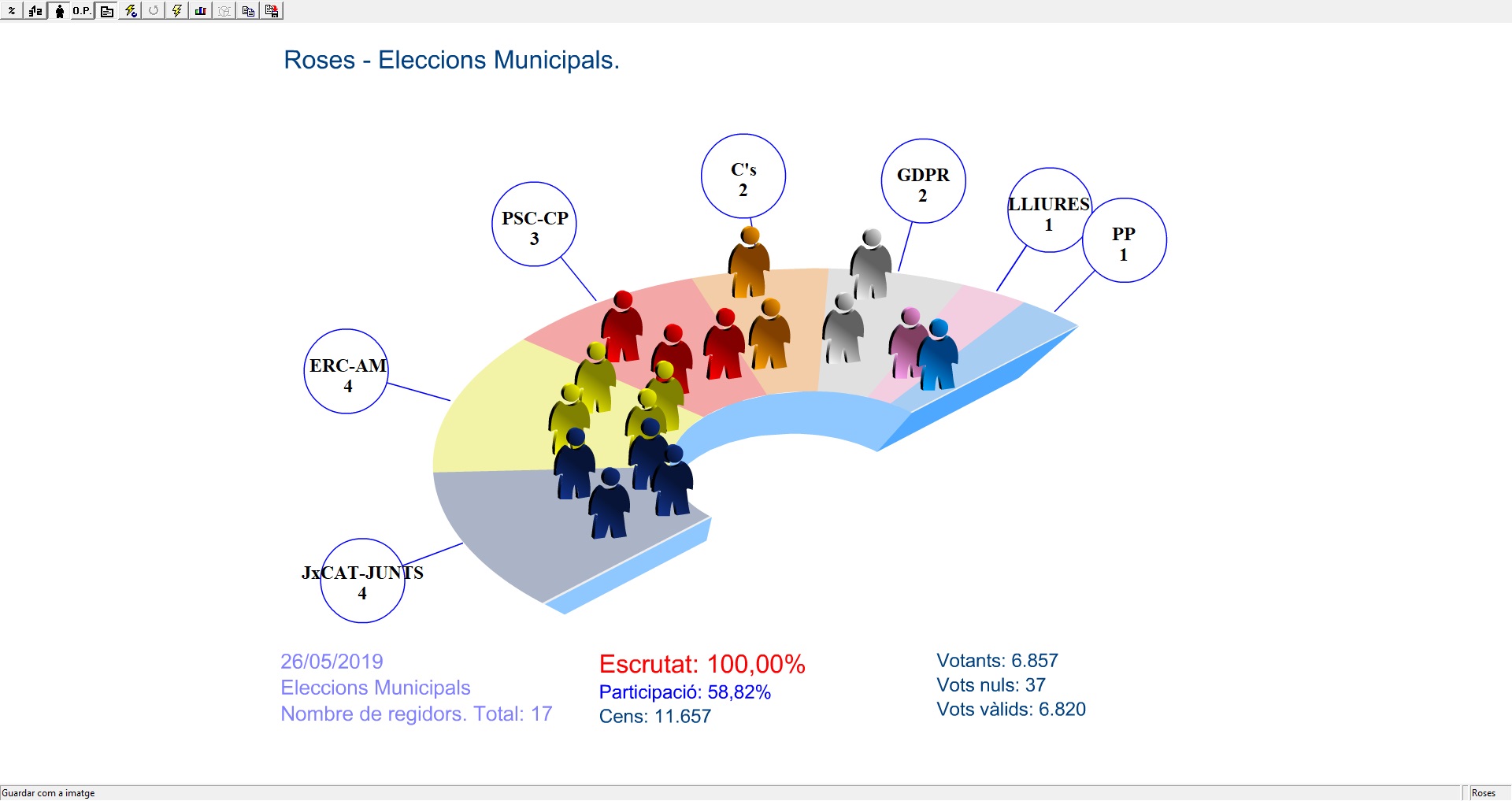 Del total d’11.657 persones que integraven el cens electoral rosinc en aquesta convocatòria, han exercit el seu dret a vot un total de 6.857 persones. La participació ha estat, doncs, d’un 58,82 %.