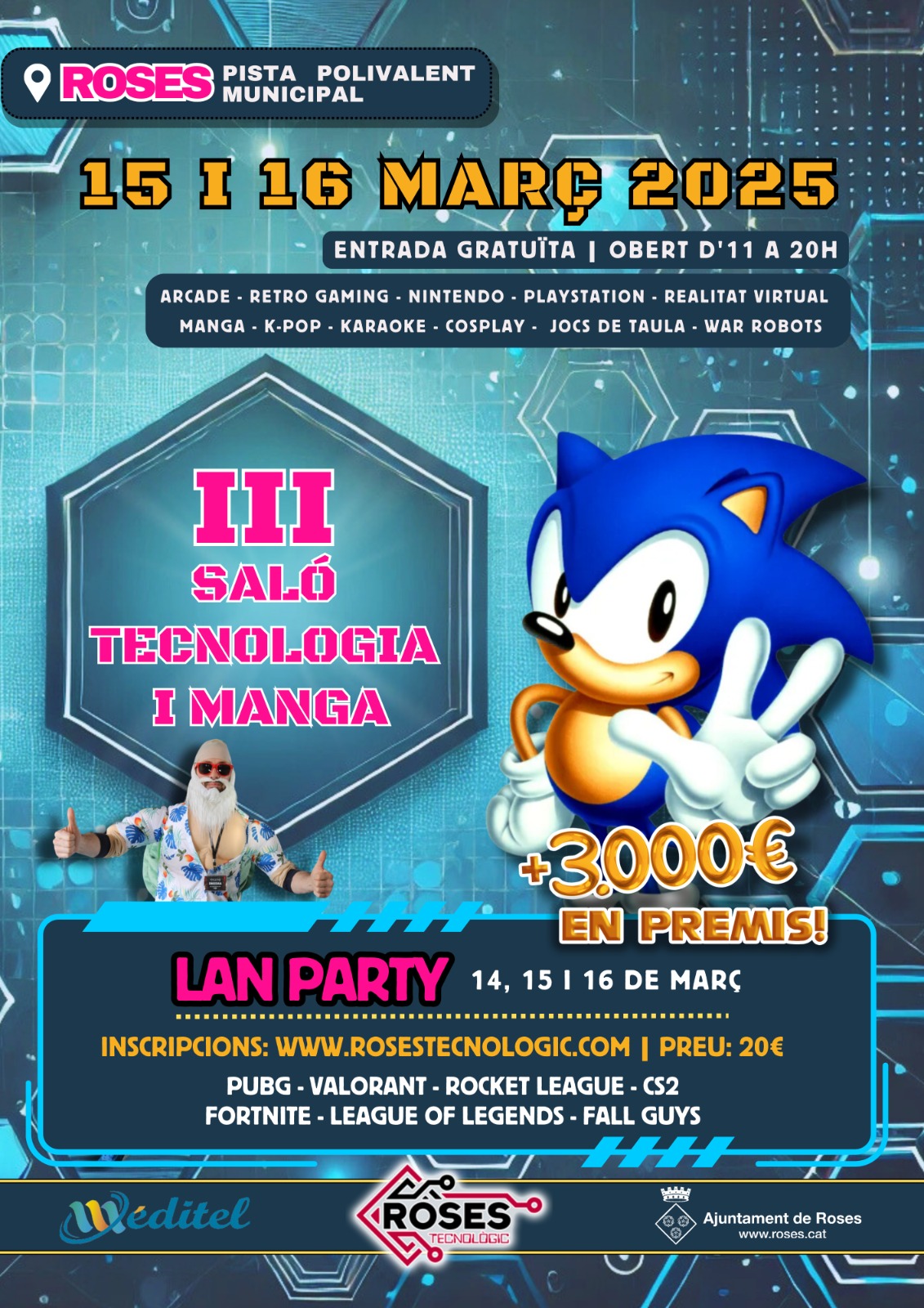 Per participar a la LAN Party i als diferents tornejos, cal inscriure’s prèviament a través de www.rosestecnologic.com, espai web que oferirà també els horaris, detalls i premis de les diferents activitats i esdeveniments.