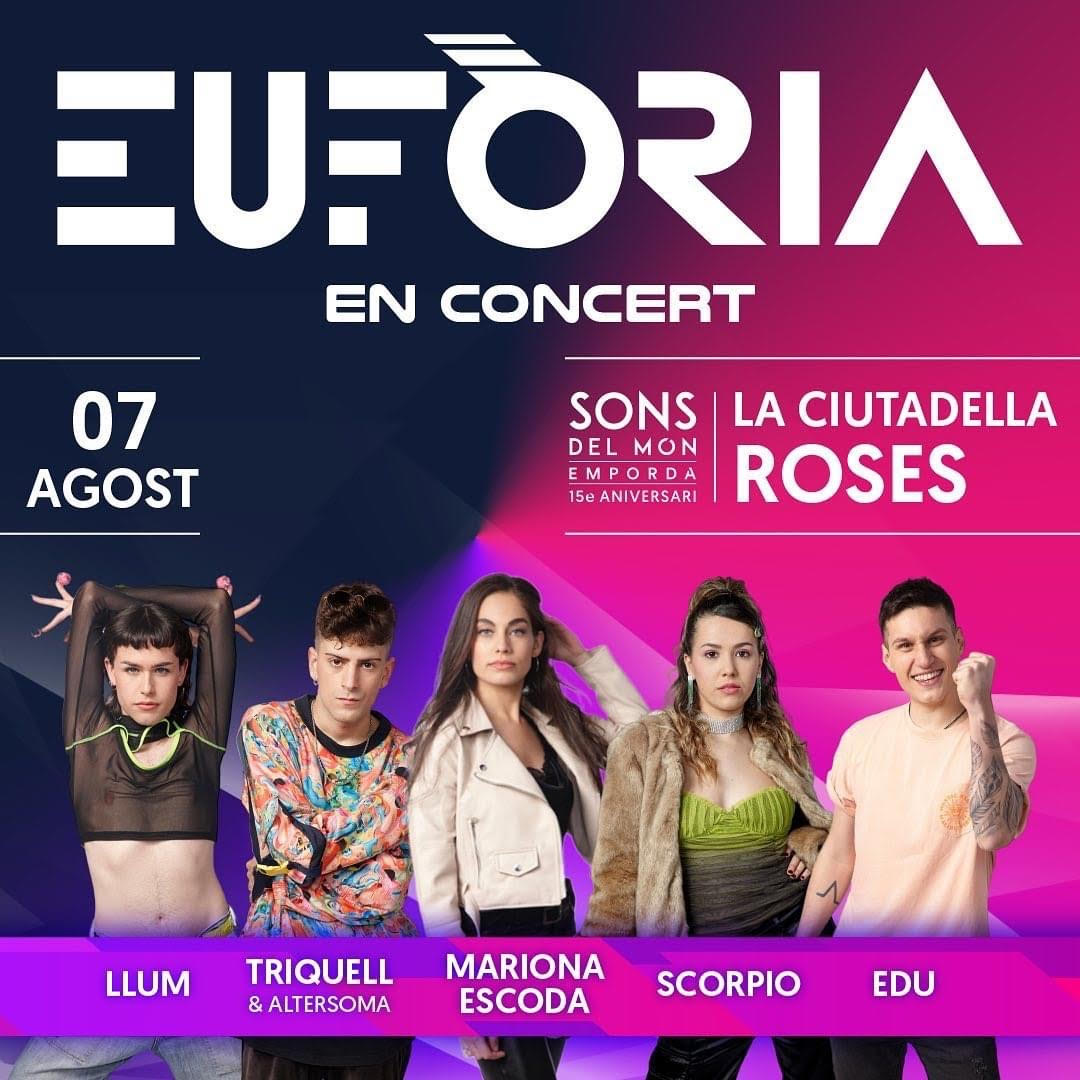 EUFÒRIA EN CONCERT serà el concert de clausura de la quinzena edició del festival Sons del Món de Roses. L'escenari de la Ciutadella acollirà el 7 d'agost les actuacions de la Mariona, en Trinquell, Scorpio, l'Edu i la Llum.
