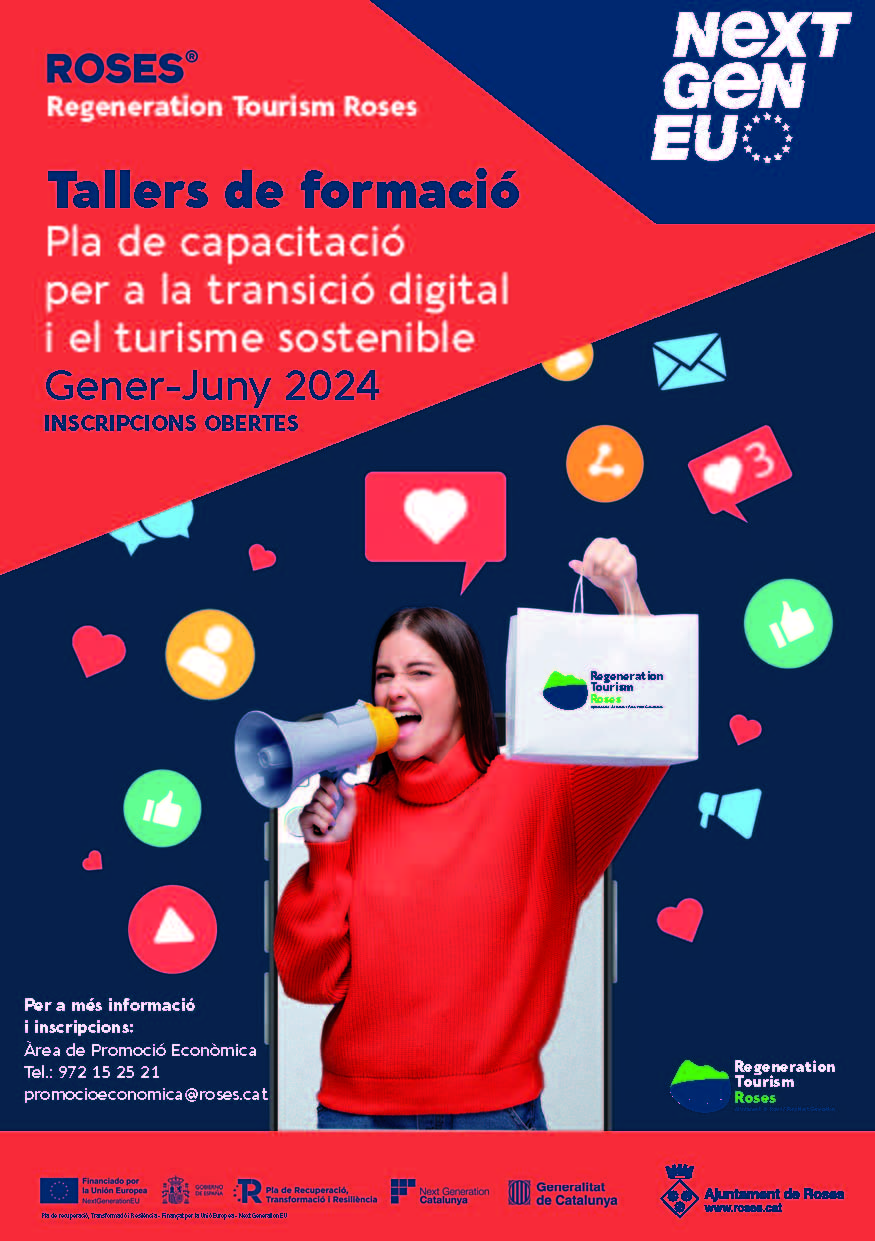 Per a més informació i inscripcions: Àrea de Promoció Econòmica (c/Madrid 1) Tel.: 972 15 25 21 / @: promocioeconomica@roses.cat o al codi QR de cada curs.