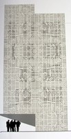 La composició geomètrica que es dibuixarà en la façana de Ca l’Anita, s’ha realitzat a partir de la pixelació del mosaic original, el qual s’ha perforat a continuació sobre les plaques de formigó emprades per revestir el nou edifici. En la seva instal·lació, es té molta cura en la posició correcta de cadascuna de les peces, per tal que les figures geomètriques que formen els orificis quedin perfectament encaixades i permetin una correcta visualització del dibuix final.