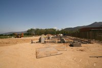 Les obres iniciades, de les quals se’n fa càrrec l’Ajuntament de Roses, consisteixen en el tancament de la parcel·la, la construcció dels fonaments i murs de suport dels mòduls prefabricats a instal·lar, la incorporació d’escales de sortida d’emergència a les diferents aules, i les instal·lacions de llum, aigua, clavegueram i pluvials fins a cada mòdul. Pel que fa a la distribució dels edificis prefabricats, aquests es disposaran entorn a una passera central de distribució, coberta amb una pèrgola que protegirà l’interior de l’aigua de pluja.
