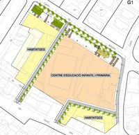 D’aquesta superfície total, 9.300 m2 estan catalogats com a sòl públic, amb 5.500 m2 destinats a equipaments docents, 1.740 a zones verdes i 2.050 a vialitat, mentre que els 3.100 m2 restants es destinaran a la construcció d’habitatges (48 de promoció pública es posaran a la venda o lloguer a preu taxat i 31 seran de promoció privada).