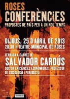 Durant el passat mes d'octubre Roses acollí el cicle de conferències “Propostes de país per a un nou temps”, el qual aplegà professionals de diferents àmbits (Josep M. Terricabras, Carles Puigdemont, Cristóbal Colom, Carme Forcadell, Vicenç Villatoro), que parlaren dels reptes de futur de Catalunya des d’una vessant econòmica, política i social. El cicle, nascut amb voluntat de continuïtat per tal d’apropar a la ciutadania de Roses i Alt Empordà el pensament i experiències de figures de l’actualitat de contrastada solvència, prossegueix la seva trajectòria el proper dijous 25 d'abril.