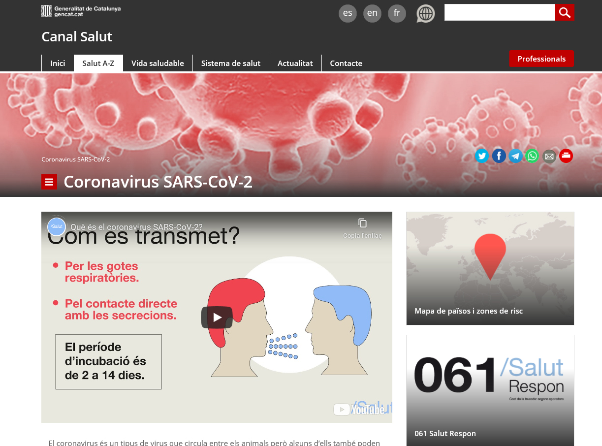 A més, podeu mantenir-vos informats consultant l’espai creat escpecíficament a la pàgina web Canal Salut, amb la informació oficial actualitzada i validada des de l’Agència de Salut Pública de Catalunya.