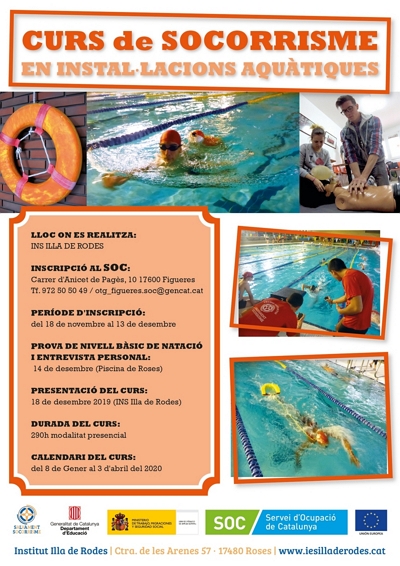 El curs Socorrisme en Instal·lacions Aquàtiques s’emmarca dins el pla de Formació Professional Ocupacional i és una primera fase pilot per impartir certificats de professionalitat en els centres educatius públics de les comarques de Girona durant el curs 2019/20.