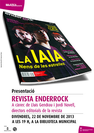 El proper divendres, 22 de novembre, la Biblioteca Municipal Jaume Vicens Vives acollirà la presentació del darrer número de la revista Enderrock, revista musical de referència de l'escena catalana. L'acte s'iniciarà a les 19 h, i anirà a càrrec dels editors, que també parlaran del panorama de la indústria musical a Catalunya, principals esdeveniments, productores i gestors musicals,etc.