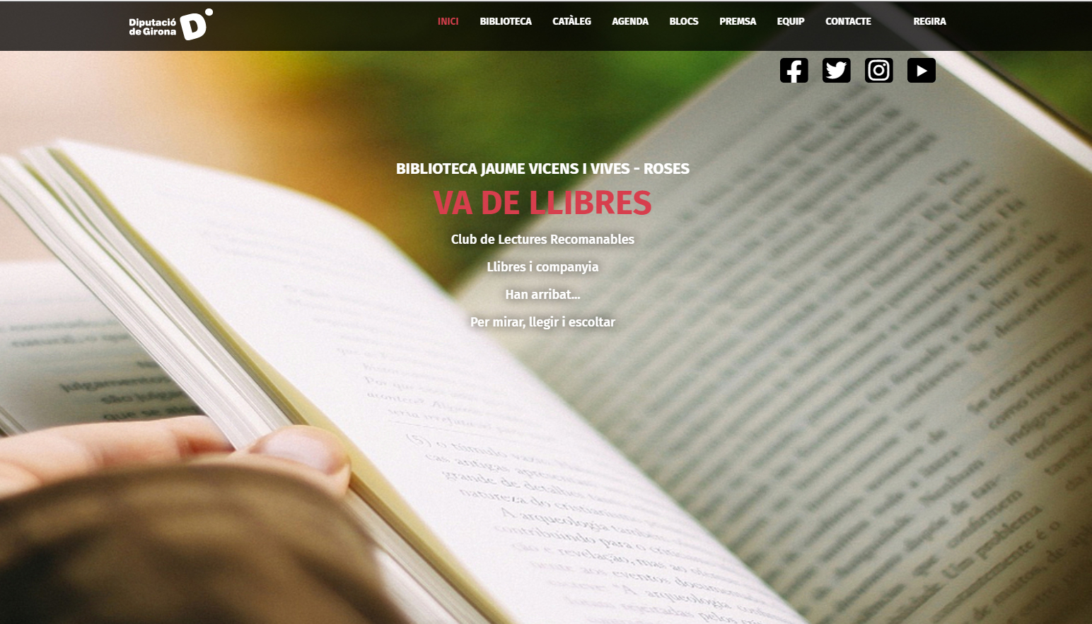 Des del moment en què s’entra a la nova web de la Biblioteca de Roses (https://www.bibgirona.cat/biblioteca/roses), l’usuari accedeix ja a una primera pantalla on es destaquen les seccions més consultades pels usuaris, facilitant així una ràpida recerca de la informació desitjada. Aquests apartats són: Busques un llibre?, amb accés directe al catàleg de la biblioteca; Per mirar, llegir, escoltar..., que ofereix guies de lectura amb recomanacions per temàtiques; l’apartat És notícia; la secció Han arribat…, amb guies de novetats mes a mes; i, finalment, Vols reservar un ordinador?