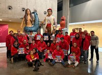 Laia Pau i Jordi Palou, de la Colla Gegantera de Roses; Sílvia Ripoll, regidora de Cultura i Festes; i Josep M. Martínez, alcalde de Roses; han presentat, en presència dels gegants de Roses, el calendari que l’Ajuntament oferirà a partir d’avui a la ciutadania per il·lustrar els 12 mesos de l’any 2025 que estem a punt d’estrenar.