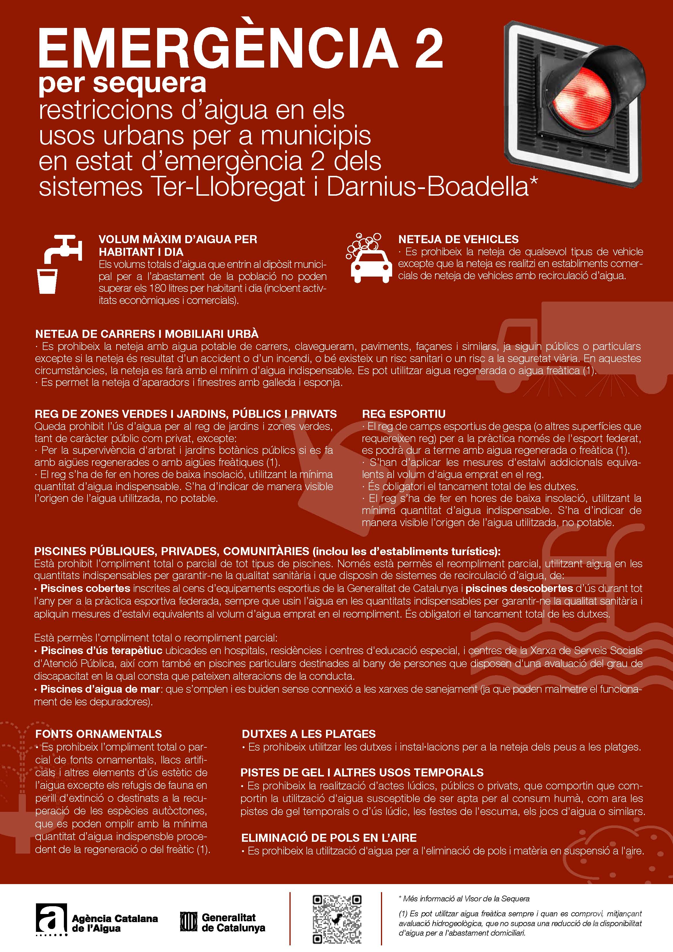 La fase 2 d’emergència per sequera limita l’ús d’aigua a 180 litres per habitant i dia