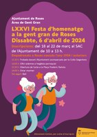 La plaça Frederic Rahola tornarà a acollir, dissabte 6 d’bril, la tradicional Festa d’homenatge a la gent gran de Roses, que enguany arriba a la seva setanta-sisena edició. Les inscripcions per participar-hi es poden realitzar des del dilluns 18 de març fins al divendres 22, al Servei d’Atenció a la Ciutadania de l’Ajuntament.