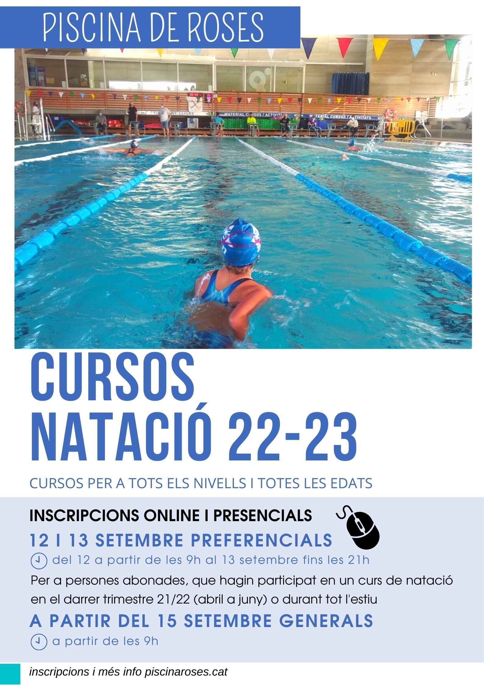 Tots els cursos són trimestrals amb renovació automàtica per a qui no es doni de baixa, s’inicien al mes d’octubre i finalitzen al juny. Pel que fa a les inscripcions, s’han programat un període preferencial des de les 9 h del dia 12 fins a les 21 h del 13 de setembre, destinat a les persones abonades a la Piscina de Roses, als participants al darrer trimestre del curs 21-22 (abril a juny) que no hagin fet la reserva de plaça i als participants en un curs durant tot l’estiu 2022. A partir del 15 de setembre (9h) s’obriran les inscripcions per a la resta de persones interessades.