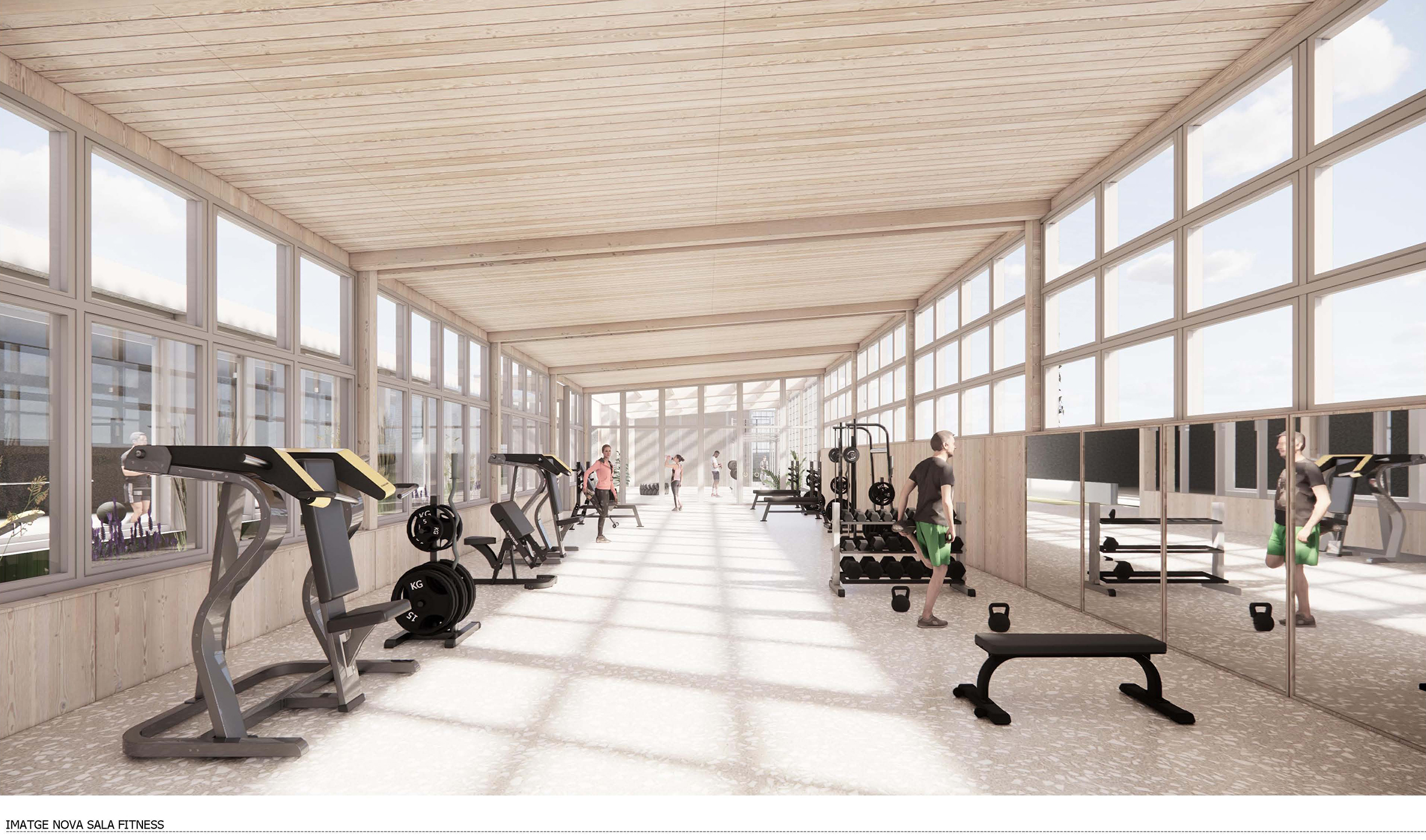 El nou projecte contempla l’ampliació de l’espai destinat a fitness–musculació amb una nova sala de 224 m2 situada a la zona dedicada actualment a Gym BOX, que es comunicarà amb l’actual per dos passos amplis a cada costat. Aquest increment de superfície permetrà comptar amb un total 474 m2 de sala de fitness, que s’equiparan progressivament amb més maquinària i materials.
