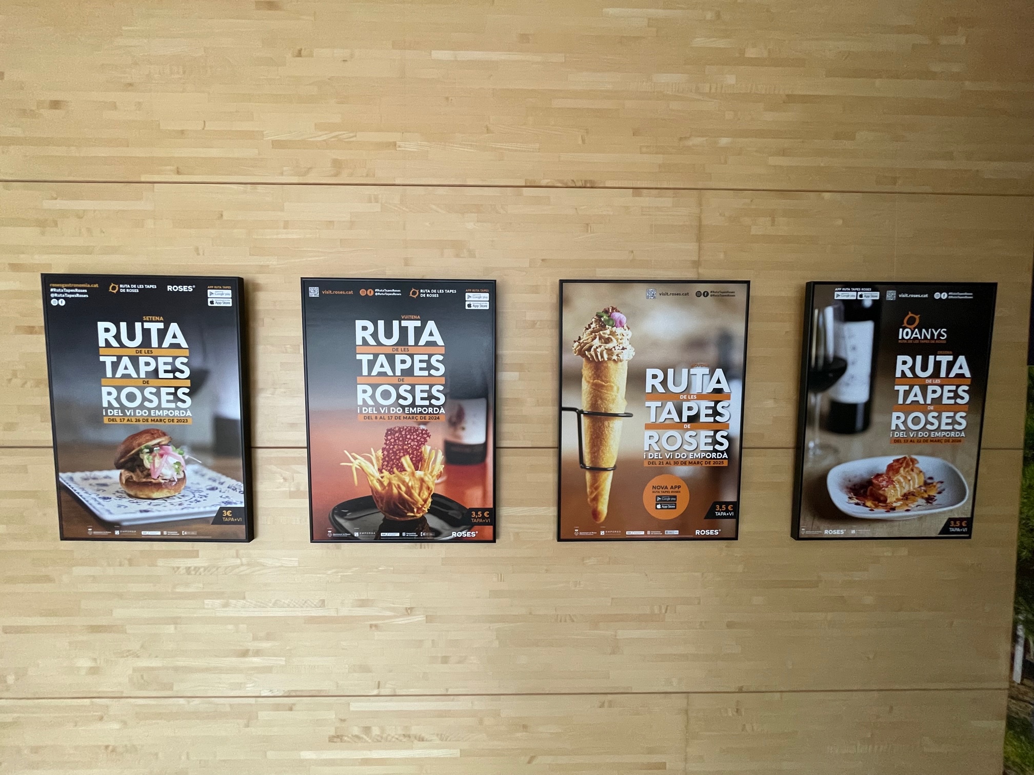 Una altra de les activitats organitzades en commemoració dels 10 anys de la Ruta, és la mostra de cartells de les 10 edicions celebrades fins al moment, que ja es pot visitar a l’Oficina de Turisme. Cada any, el cartell que anuncia la gran festa gastronòmica de Roses, pren com a protagonista la tapa guanyadora de l’edició anterior, de manera que la mostra permet veure en un sol espai les 9 tapes guanyadores fins avui. S’exposaran al públic fins al dia 22 de març.