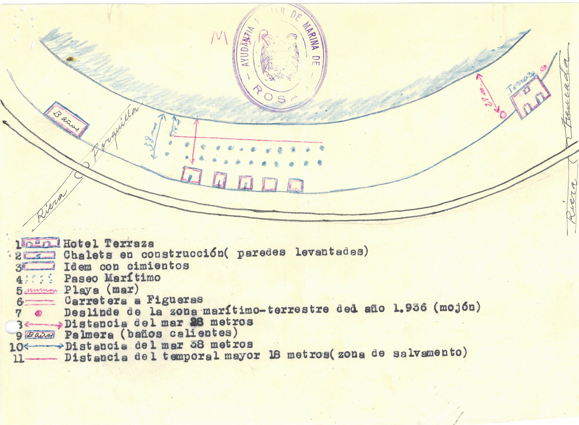 L'expedient mostra les influències fetes servir pels promotors, sol·licitant la intercessió de l'almirall comandant del Departament Marítim de Cartagena, en aquell moment Pascual Cervera Cervera, qui ordenà la resolució de l'informe que havia de de permetre la construcció dels xalets. Immediatament, el llavors Ajudant de Marina de Roses, Vicente Aldeguer, redactà l'informe favorable corresponent, mentre que, tres dies més tard, la Comandancia Militar de Marina de Barcelona informava que no existia inconvenient que se seguissin les obres de referència.